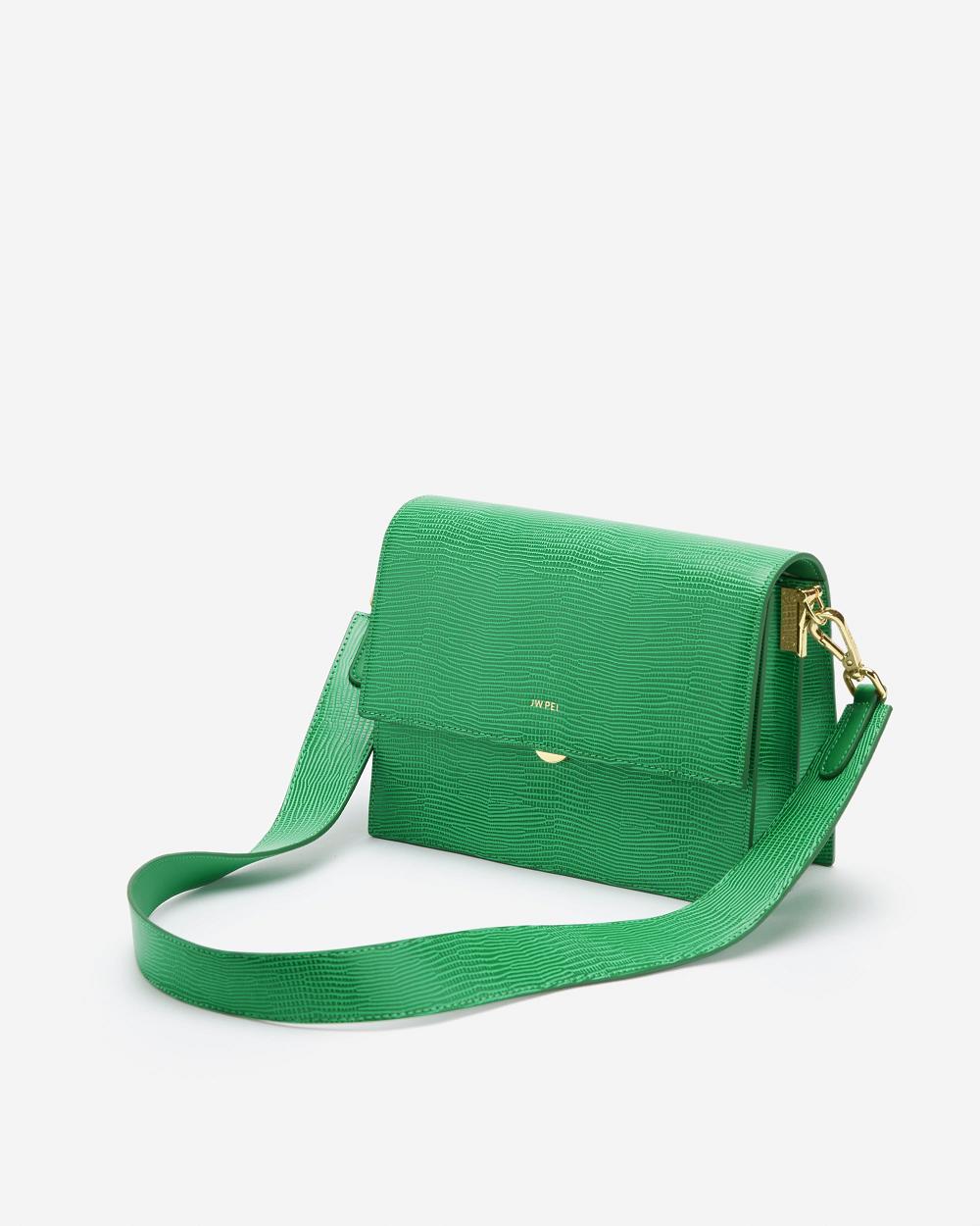 The JW PEI Mini Flap Crossbody is dressed in lizard-embossed vegan leather with gorgeous hardware. This simple crossbody bag can hold all of your necessities and amp up a basic look to make it seem more complex.